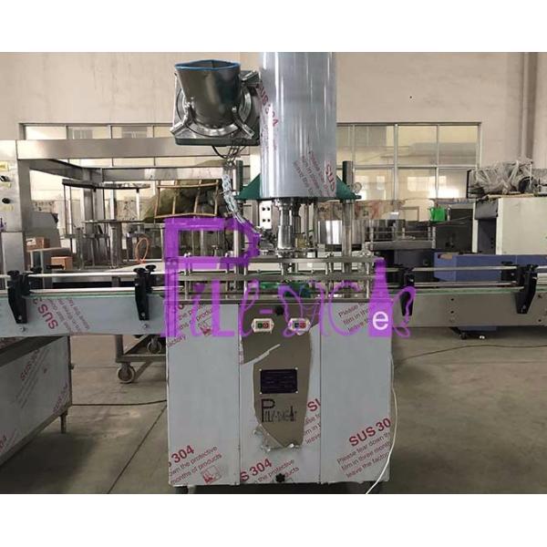 The machine is used for capping for plastic screw caps, it includes auto cap loader and capping system 2 parts. Workers put bulk qty caps into cap loader, the cap loader will unscramble caps automatically and bring caps down in cap rail and then to capping head. Cap loader can hold more than 200pcs of caps each time, it will be convenient for adding caps often. When capping head catch cap, it will go down to bottle mouth and finish capping.